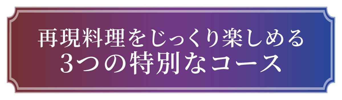 厳選した9つのレシピを、3つのコースに分けて構成しました。全コースに共通して含まれるのは、デザート作りでスランプに陥った岳に海が振る舞った「苺のタルト」。それぞれのコースで岳が手掛けた料理を味わった後は、彼を料理の道へと導いたもう一人の天才・海の存在も感じてください。