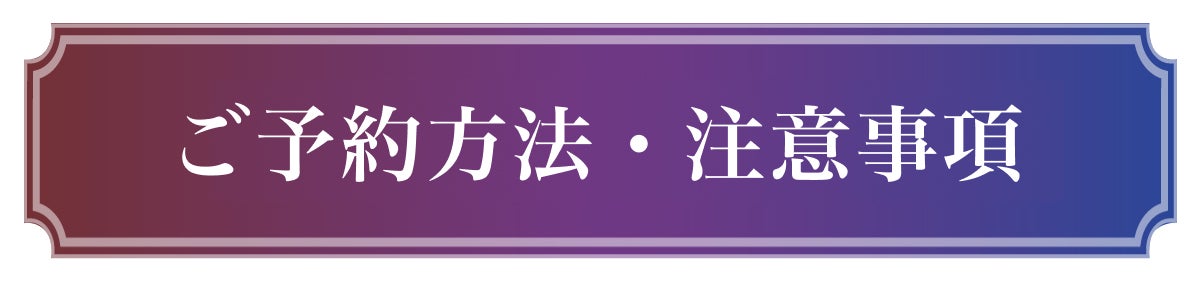 ◆ご予約確定後の内容変更・キャンセルは承っておりません。あらかじめご了承ください。