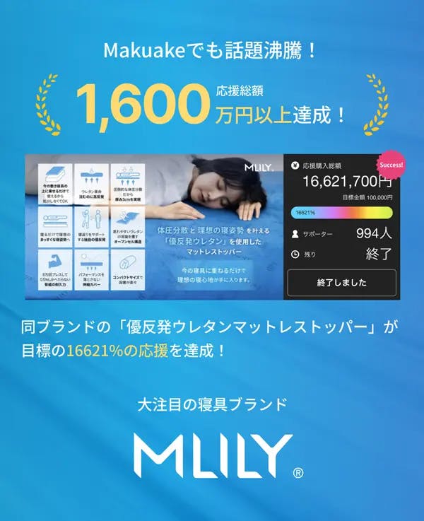 2025/07/28 19:00◤ ̄ ̄ ̄ ̄ ̄ ̄ ̄ ̄ ̄ ̄ ̄ ̄ ̄ ̄ ̄ ̄ 残り【5時間】\支援総額600万円突破!/________________◢本当にたくさんの応援ありがとうございます!!machi-yaでのプロジェクト、本日23:59で終了します!今回のアイテムは、世界中で選ばれている寝具ブランド「エムリリー(MLILY)」がこだわり抜いてつくった自信作ですエムリリーは、プロアスリートにも支持される品質と、世界110ヵ国以上での販売実績がある信頼のブランド。「本当にいいものを、納得の価格で」──その想いで今回のプロジェクトが生まれました。特別価格は今だけ限定!正直、ここまでお得なのは今回限りです迷っていた方も、気になっていた方も、この【最後の5時間】を逃さず、ぜひご覧ください応援、本当にありがとうございます!ラストまで全力で走り切ります! もっと見る