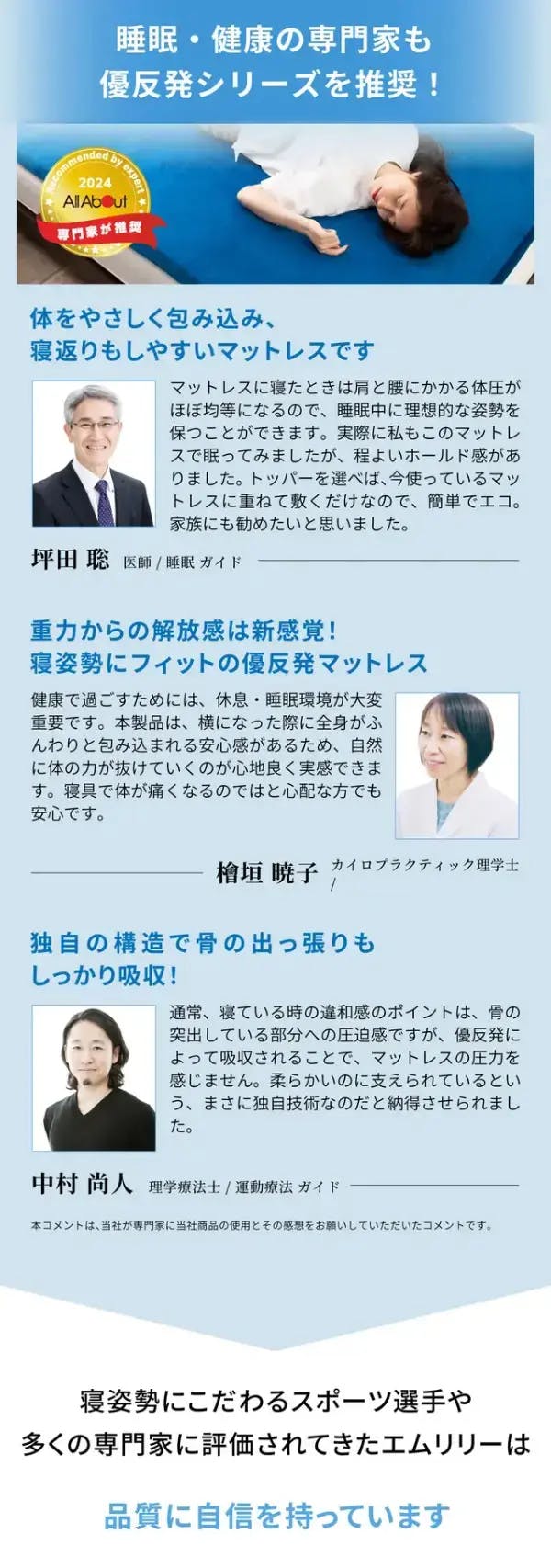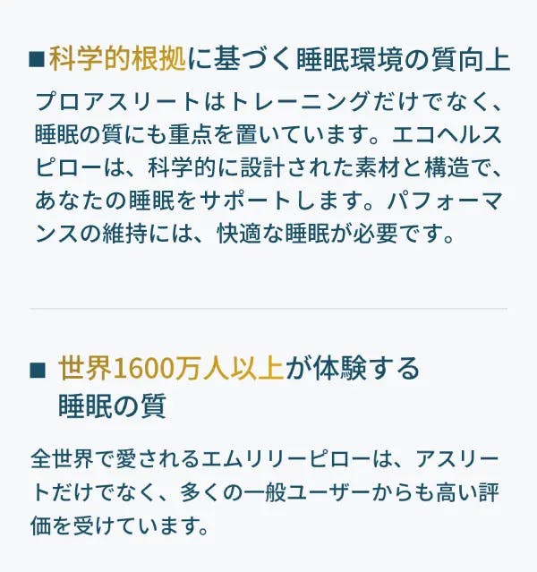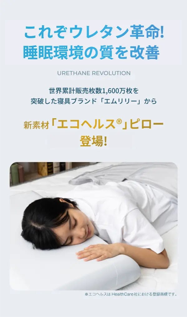 世界的な寝具メーカーとなりました。エムリリーエコヘルスピローだけの寝心地を是