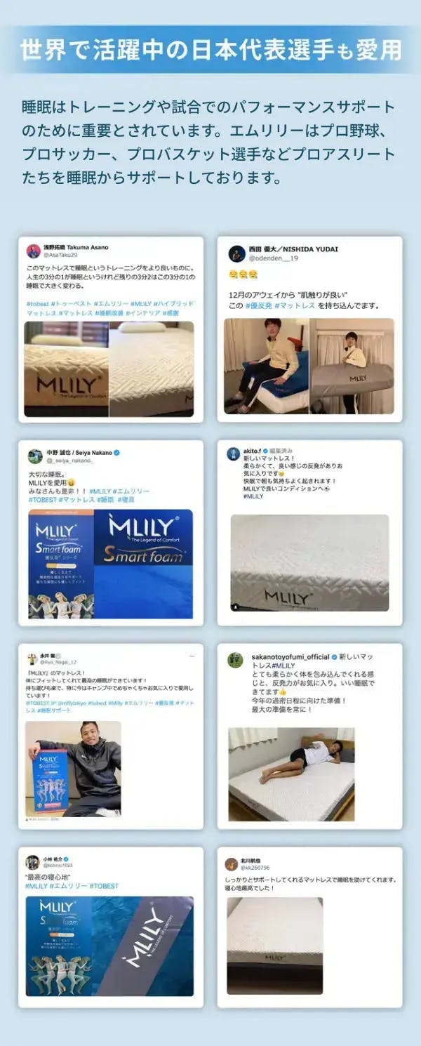 を締結。練習場の休憩室やスタジアムのシートには『エムリリー』が採用され、睡眠