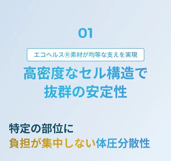 体圧を均等に分散し、特定の部位に過度な負担がかからないように設計されており、