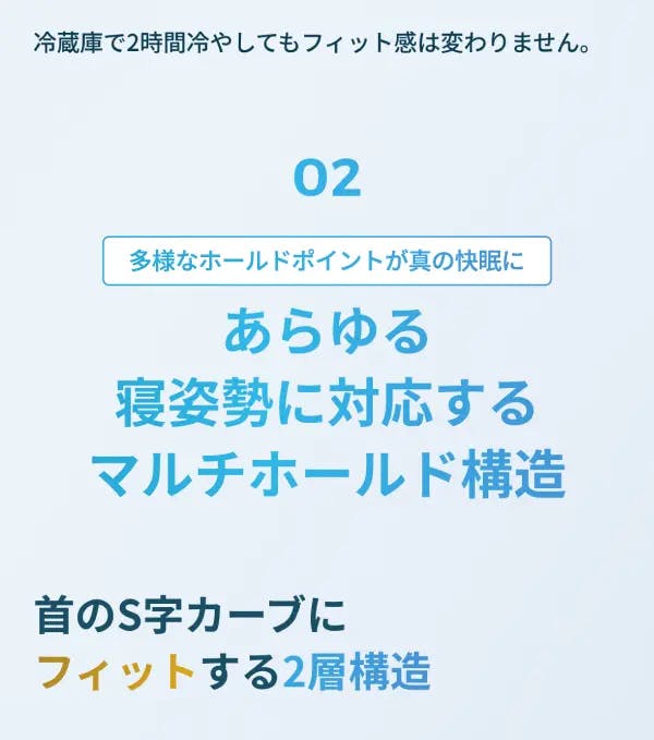 複数のホールドポイントでしっかりと頭部、首、背骨を支え、仰向けでも横向きでも