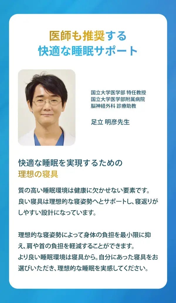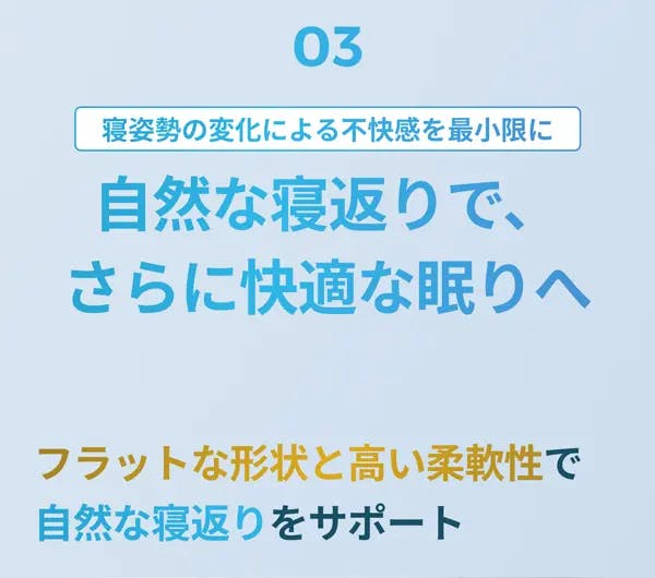 様々な睡眠姿勢や動きに対応できる設計で、不快感を引き起こさず、快適な睡眠を