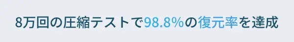 一晩の寝返り回数、約20回×10年と換算される8万回の圧縮テストで98.8%の復元率
