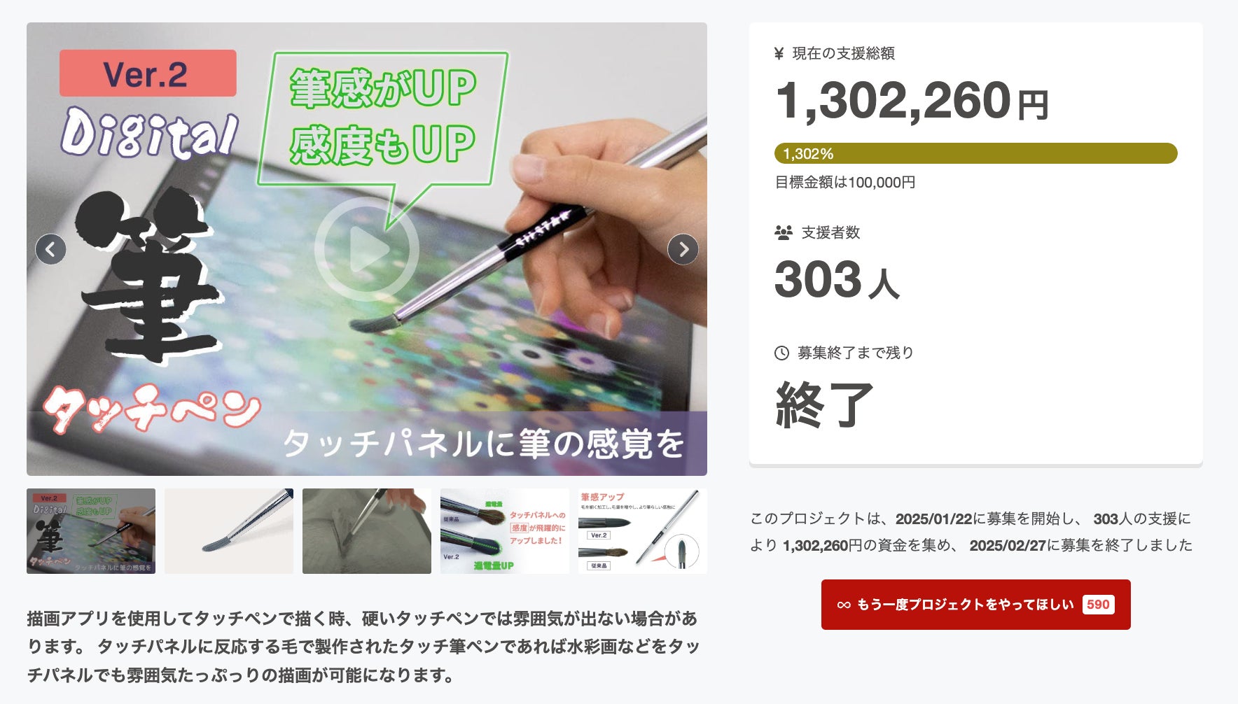 2025/04/11 14:15毎度ありがとうございます。フルークフォレストです。タッチ筆ペンVer2のアンコール掲載を開始しました。アンコールということもあり、開始から大変順調に支援を伸ばしております。記事も出始めておりますので是非合わせてご覧いただき、ご検討をお願いします。ライフハッカー記事よろしくお願いします。 もっと見る