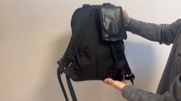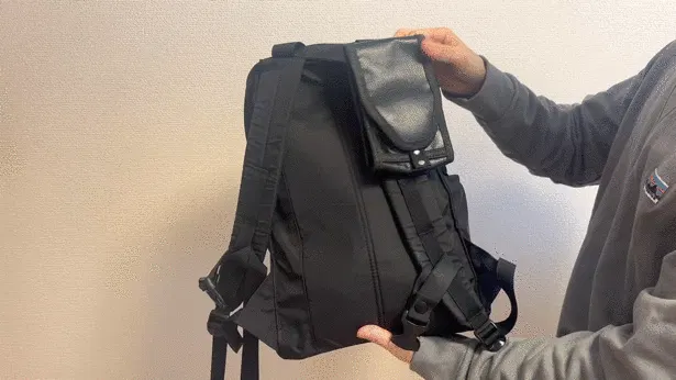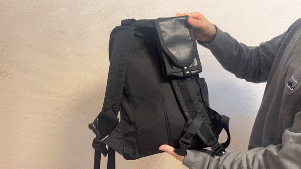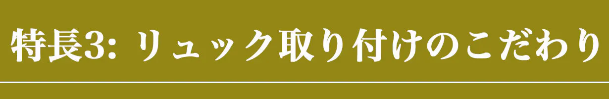 リュックへの装着にも工夫を凝らしました。他製品でよくある「ズレ落ち」の問題を防ぐための設計です。