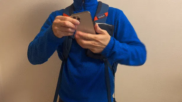 簡単ワンタッチ開閉&ズレ防止!リュックに取り付けるアウトドア仕様のスマホポーチ!