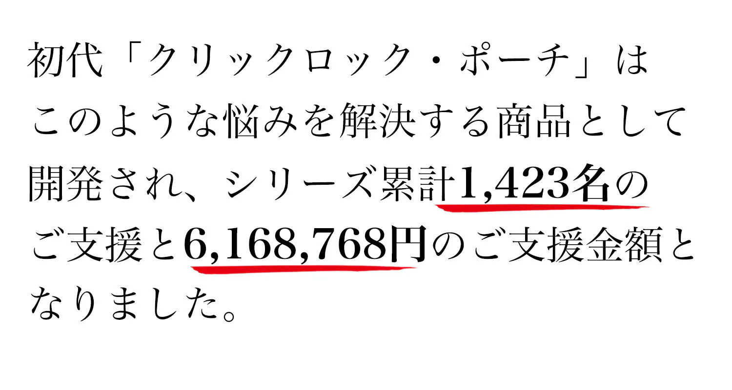初代クリックロック・ポーチのお客様からのご指摘事項、不満点を全て洗い出し、試行錯誤を重ねて「クリックロック・ポーチRevo(レボ)」は誕生しました。