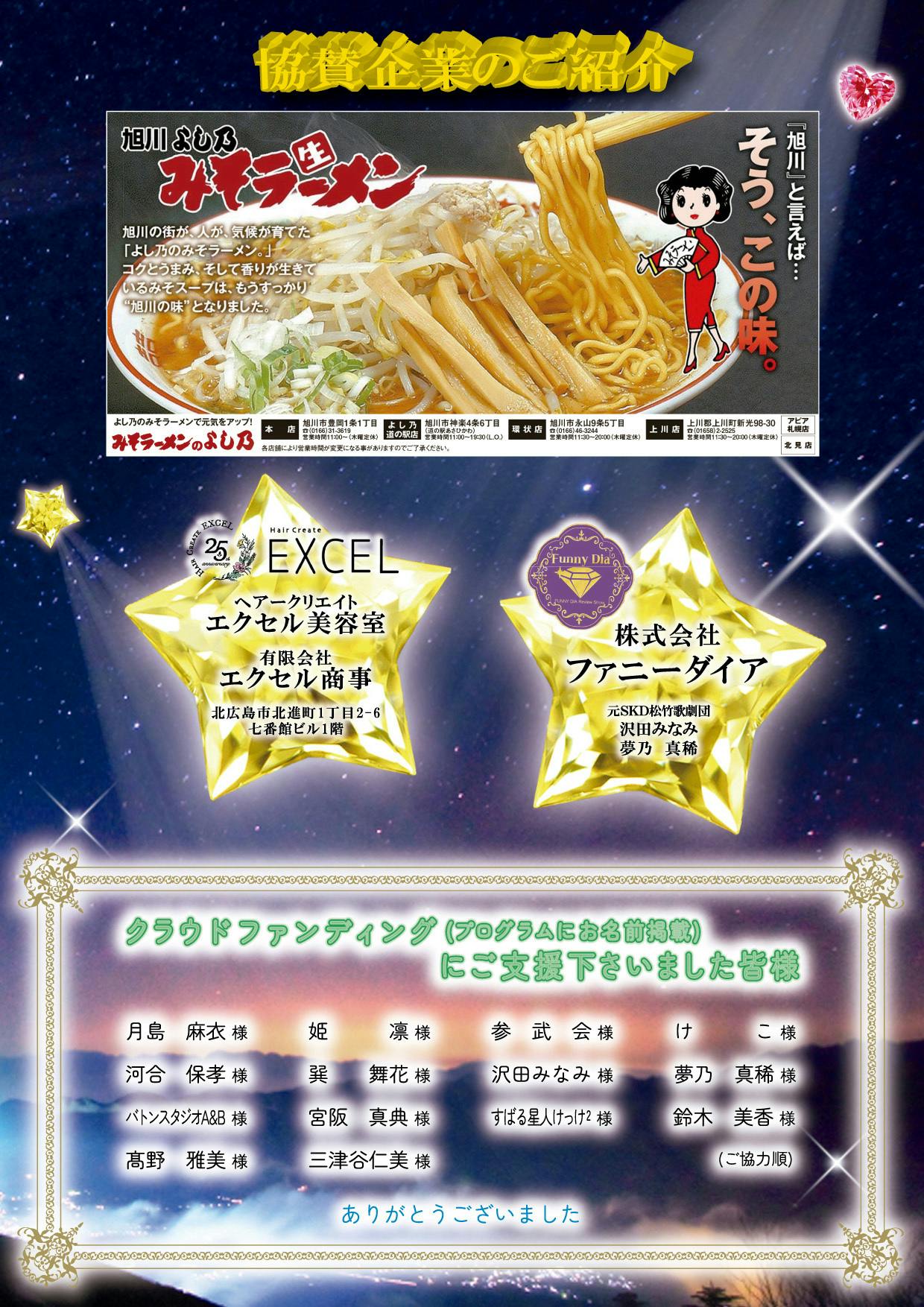ご支援くださった方は、支援者様のお名前(ニックネーム)を当日劇場にて販売の公演パンフレットに掲載させて頂きます。