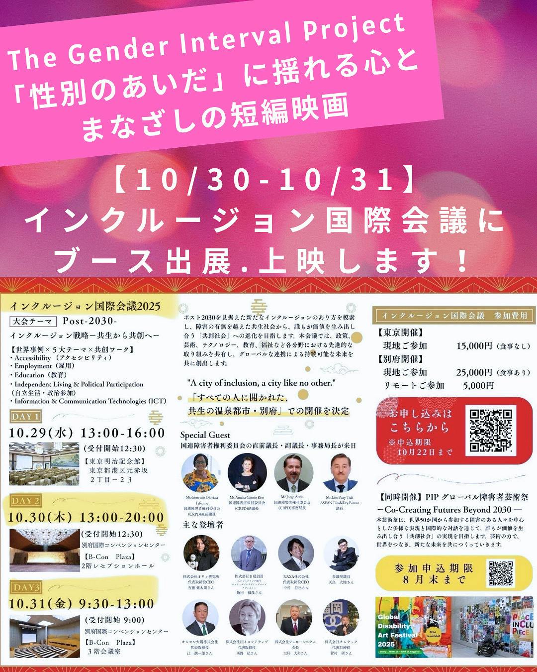 2025/07/19 20:26【今後の出展予定のご報告】このたび、2025年10月30日〜31日開催の インクルージョン国際会議2025 にて、弊社がブース出展を行うことが正式に決定いたしました。また、ブース出展同会場にて、映像作品『The Gender Interval Project』の上映も行う運びとなりました。― 世代を越え、性別を越え、国を越えて、私たちは共に生きるための、小さな対話を始めていく ―この映画は、多くの方々からのご支援をいただきながら、多様なまなざしを映し出すことで、社会の境界をやわらげていく。感性や個性の違いを尊重しあい、アートを通じ、心が触れ合う社会を目指して制作しているインクルーシブな未来を感じ合う映像プロジェクト作品です。支えてくださった皆さまのおかげで、国際的な場にて本作を届ける貴重な機会をいただけたこと、心より感謝申し上げます。インクルージョン国際会議2025では、世界各国から多様なバックグラウンドを持つ来場者が集い、共生をめぐる対話が行われる予定です。その中で、本作品が一人ひとりの感性にそっと触れ、対話のきっかけとなることを願っています。今後も、国内外での上映機会や対話の場を広げながら、アートや映像を通して、“感じることを肯定し合える社会”を育んでいきたいと考えています。引き続き、どうぞ温かく見守っていただけますと幸いです。いつも応援ありがとうございます! もっと見る