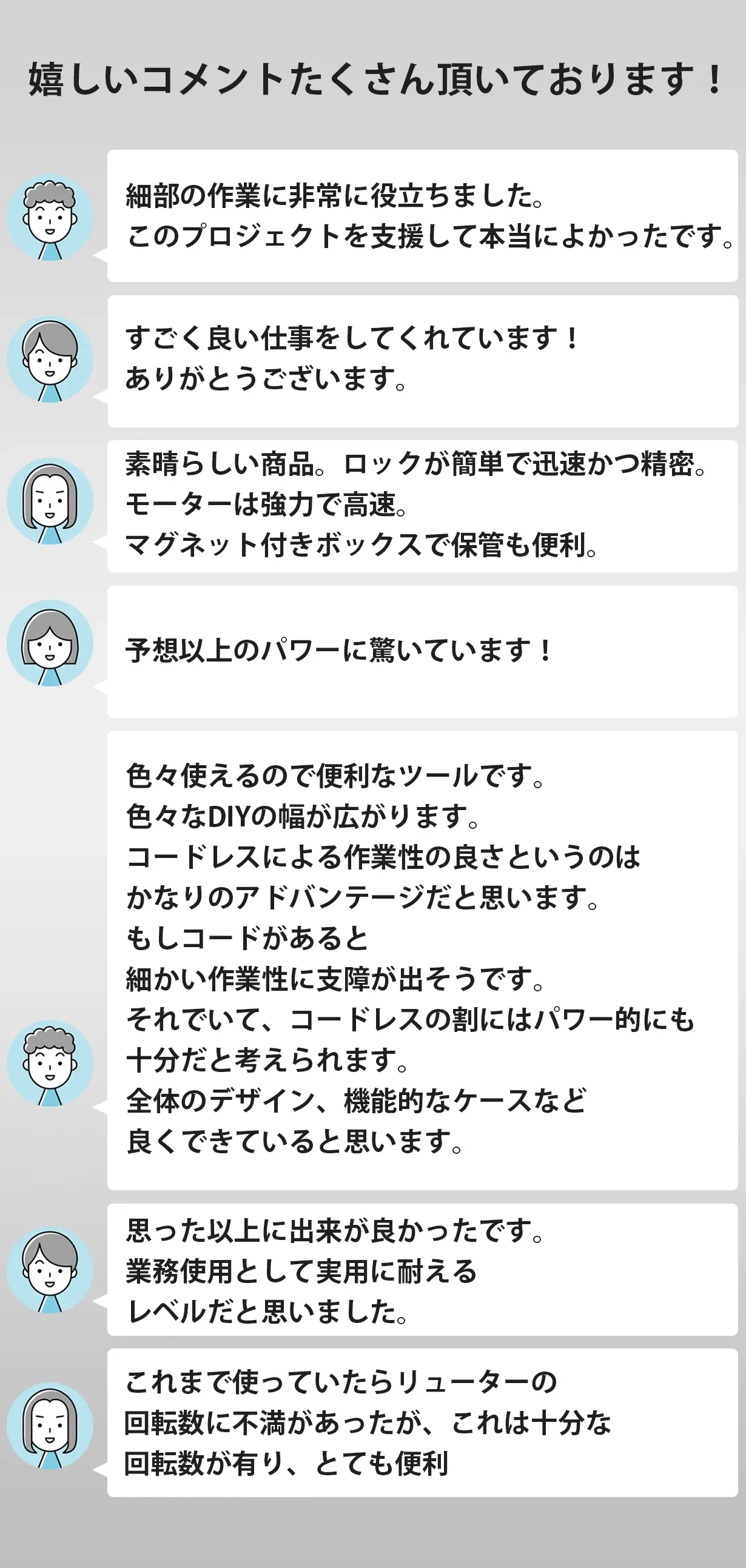 今回提案する商品は、最強を目指した精密電動ドリルです。さまざまな工具を取り扱っている弊社としては絶対にみなさまに紹介したい商品でした。やっとお披露目できる日が来たことを嬉しいく思います!