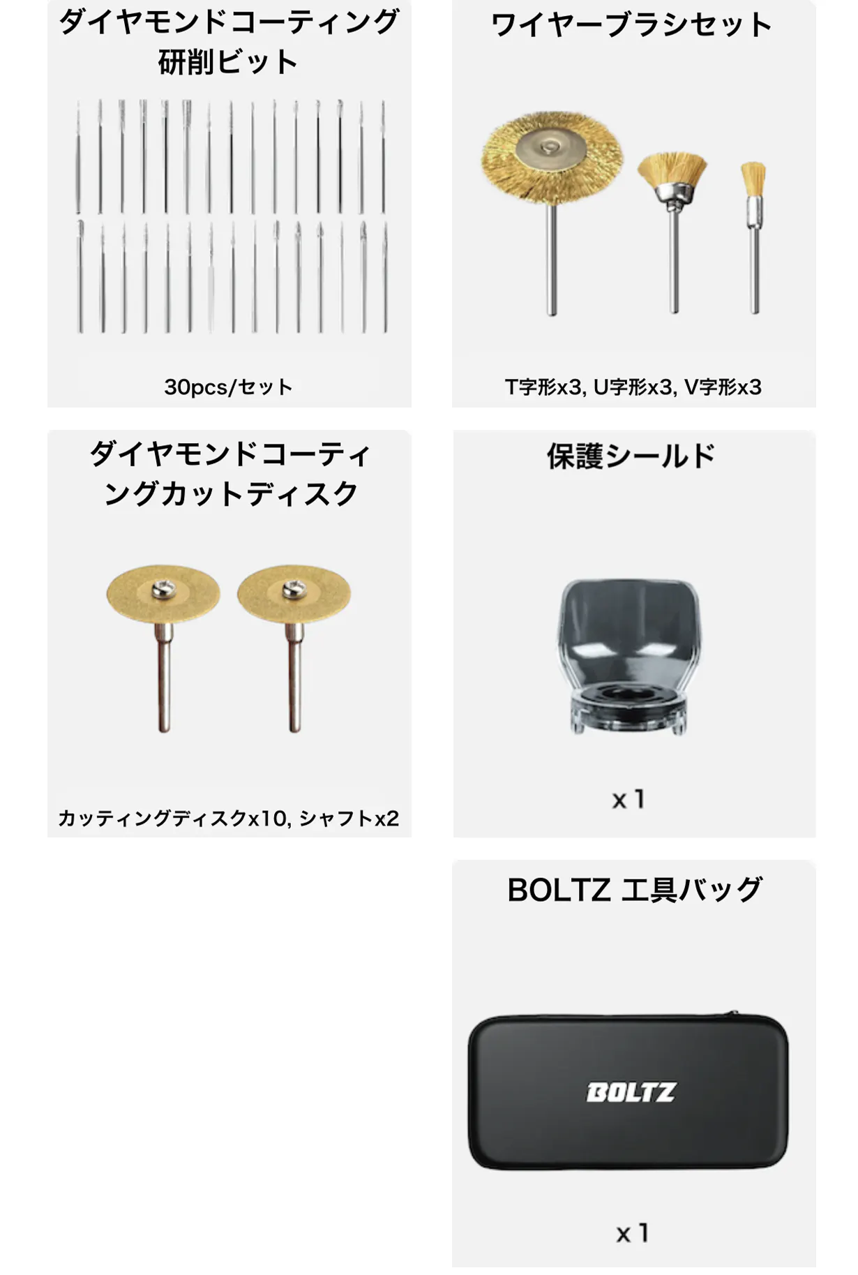 BOLTZがあれば「切る」「ドリルする」「彫る」「研磨する」がより簡単かつ快適なものになるでしょう!