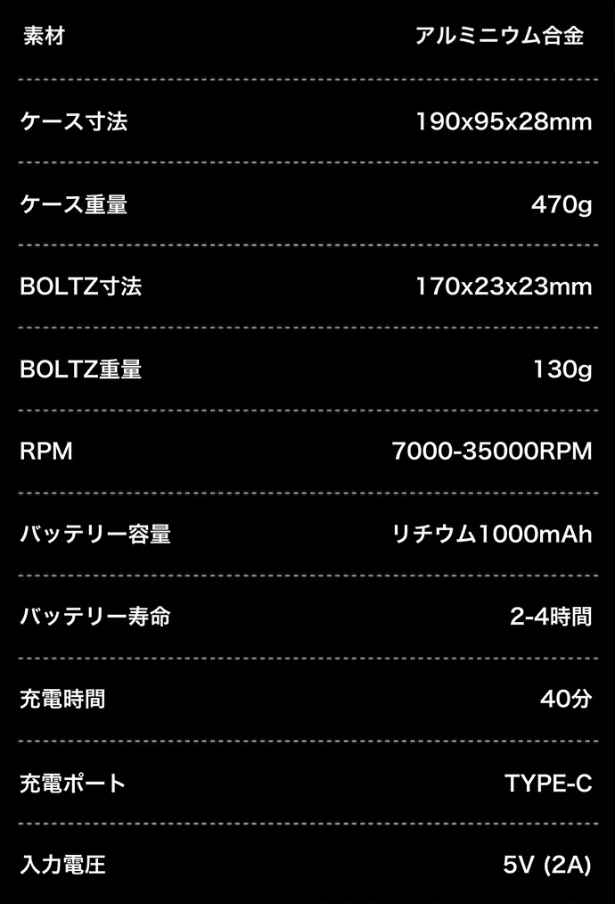 前述していますが、BOLTZは0から35000回転まで対応可能。