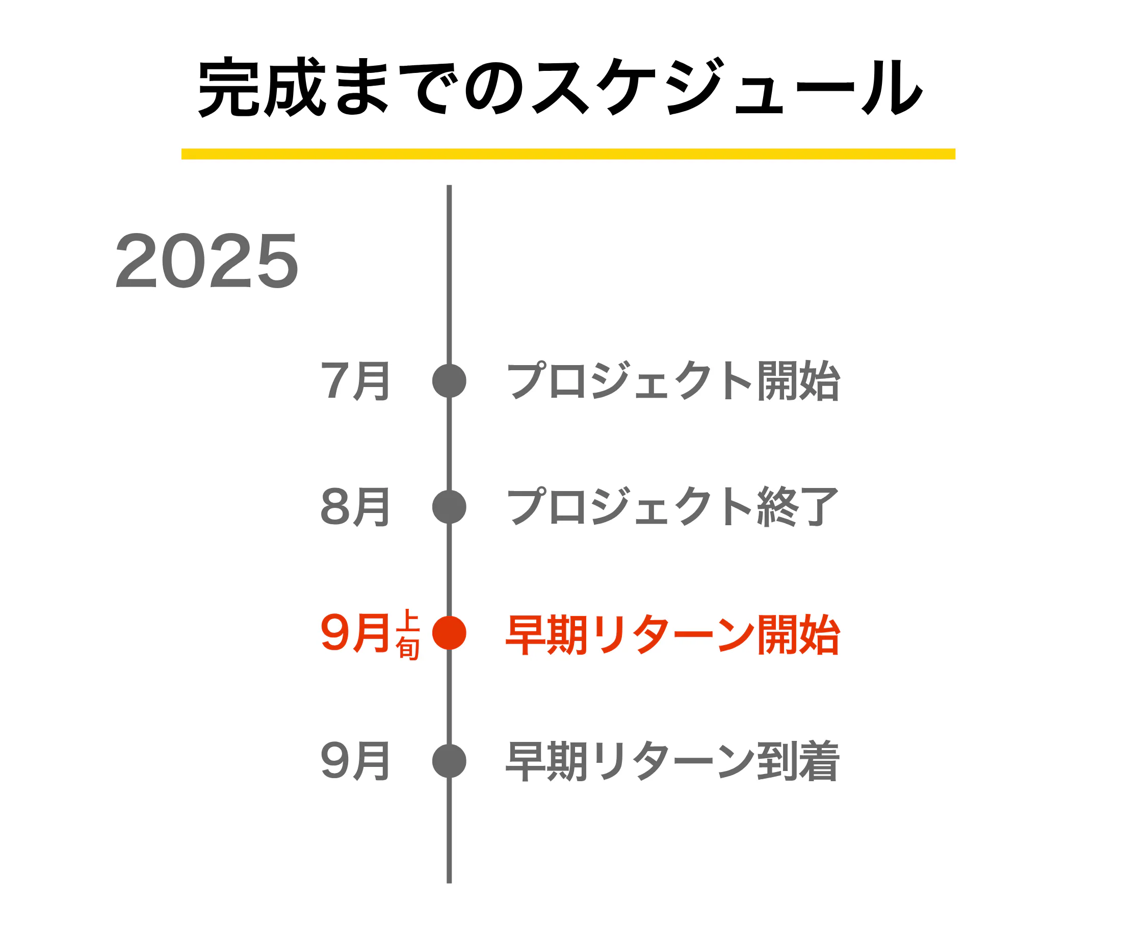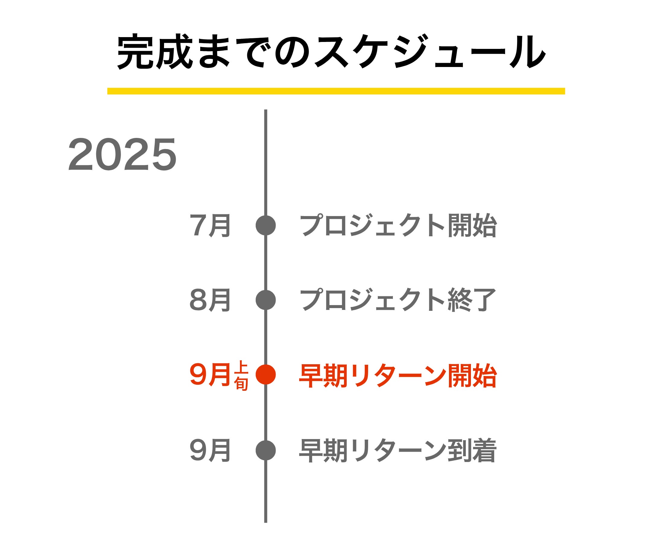 ※本文中に記載させていただいたスケジュールは、あくまでプロジェクト公開時点の予定です。支援の性質上、配送遅延のおそれがございます。