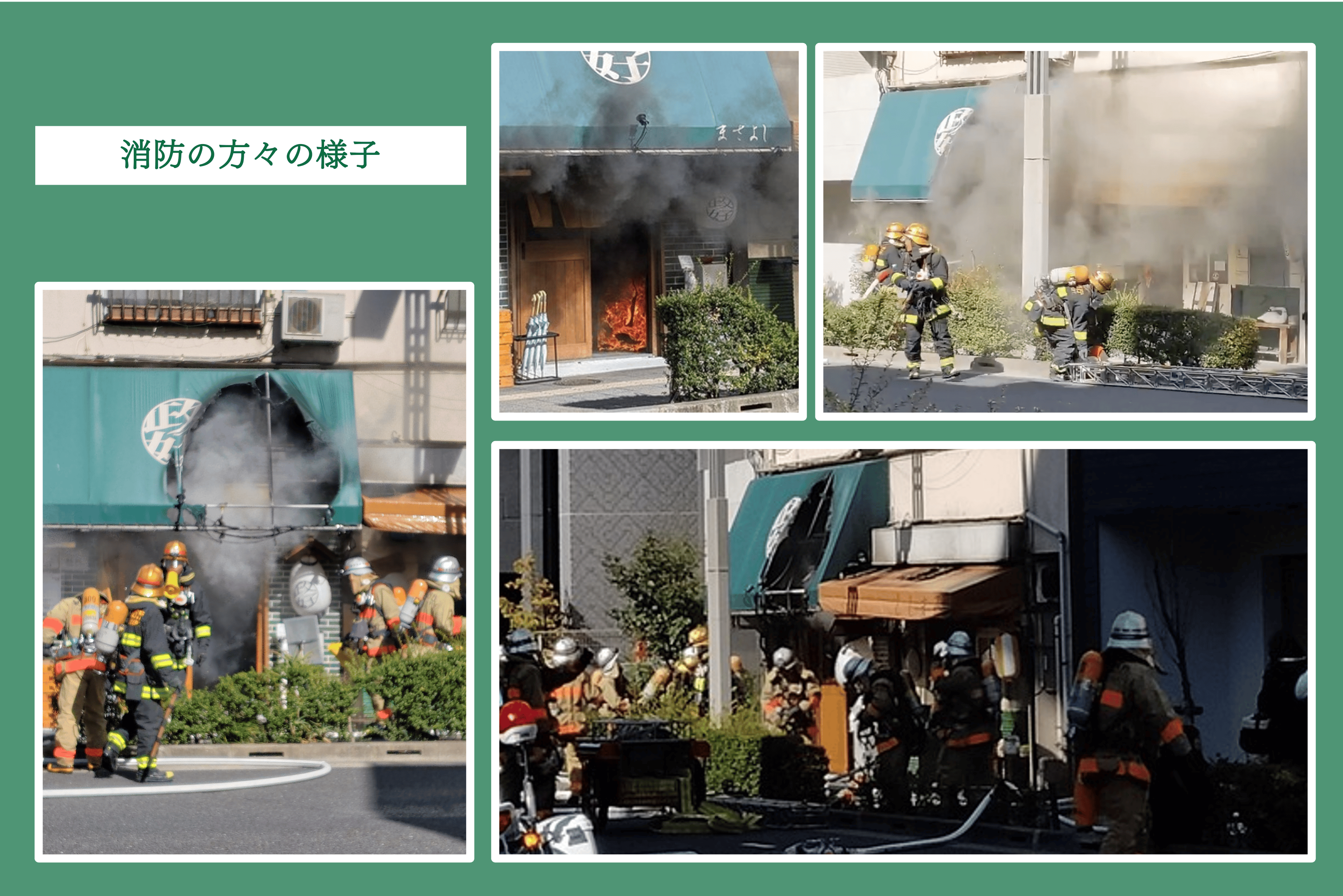 お客様と近隣の皆様にはすぐに避難していただいた為、人的被害がなかったのが幸いです。