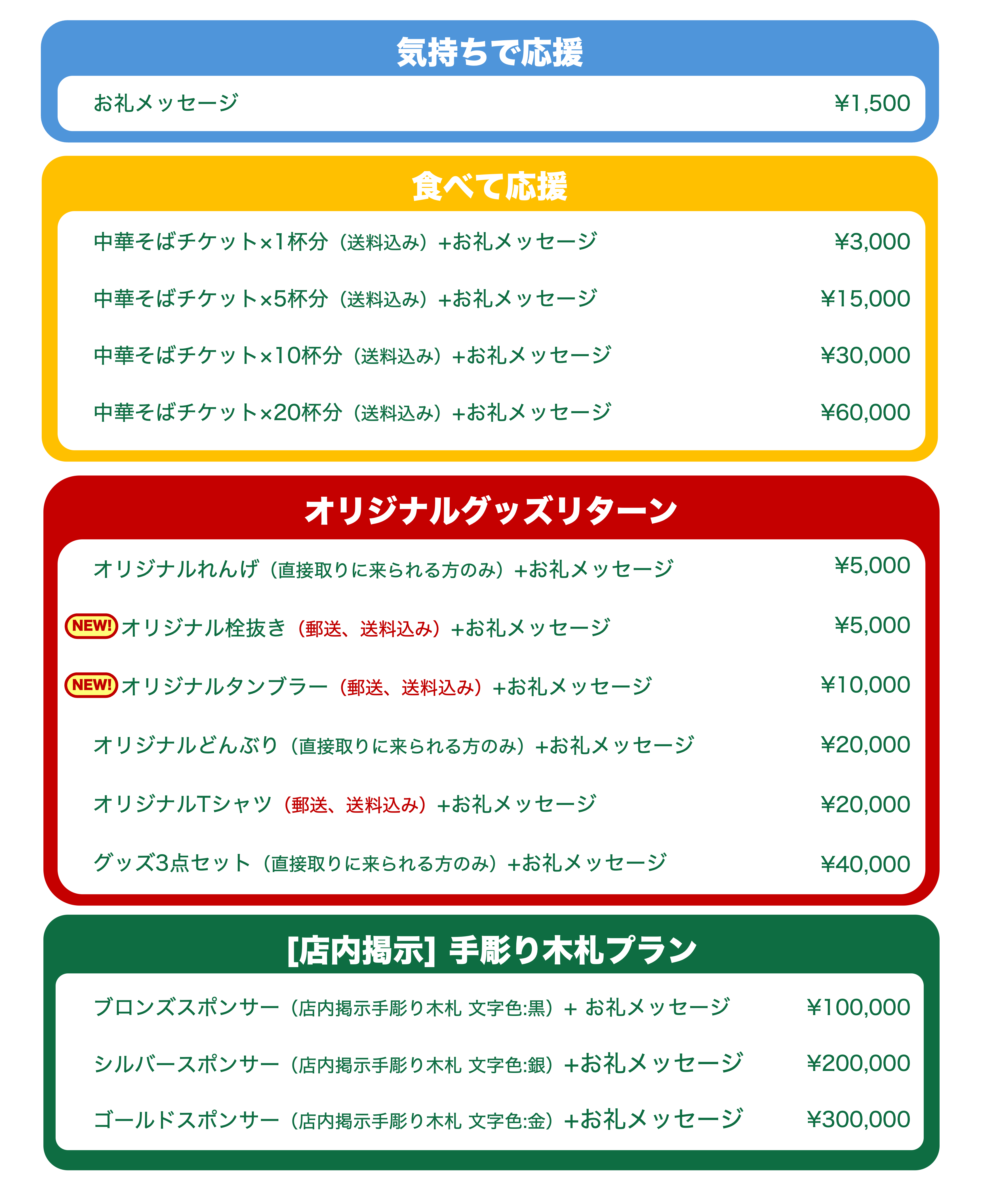 また政好ラーメンと生姜飯を食べれるなら可能な限りのご支援は惜しまない気持ちでおります。