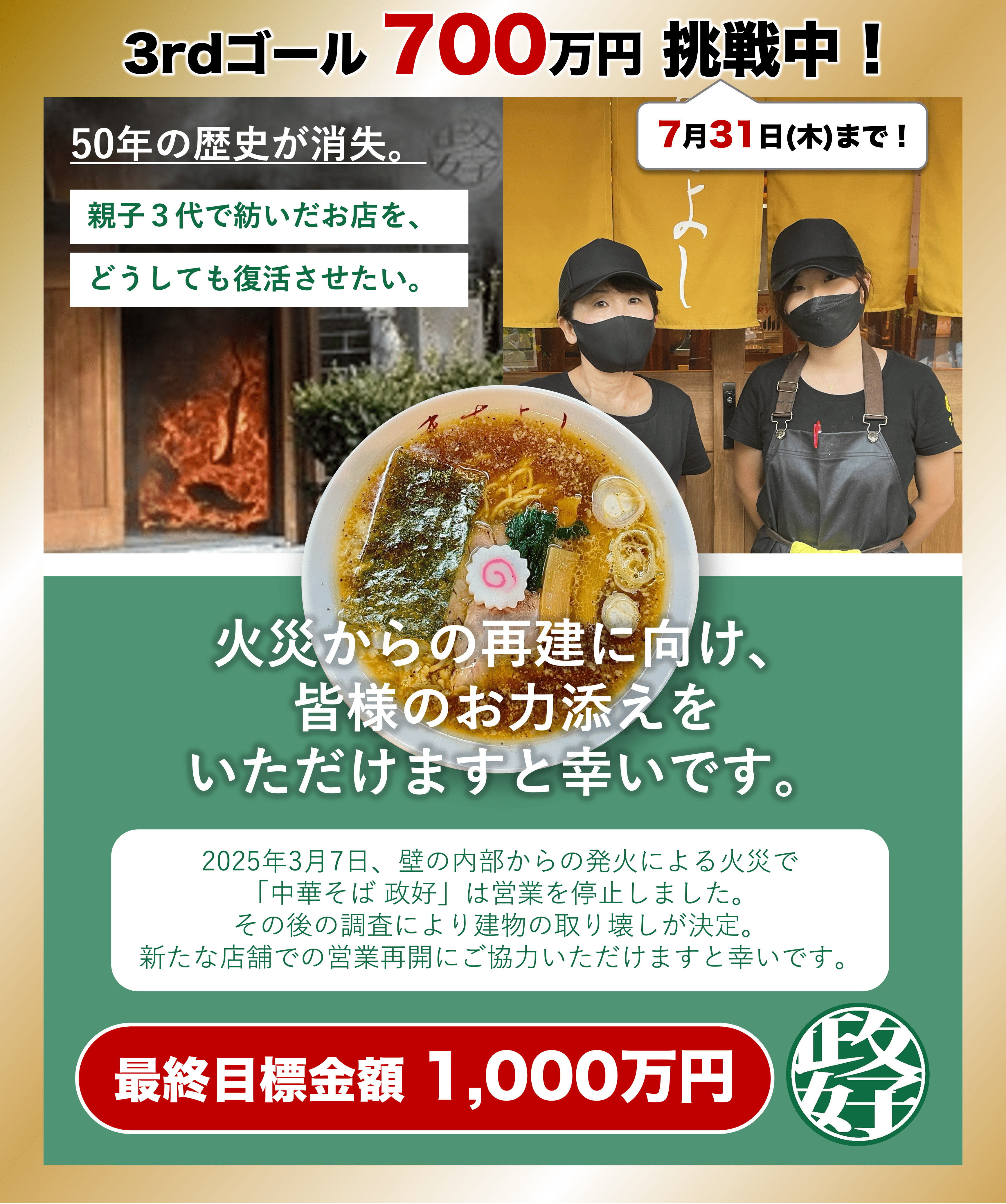 美味しいラーメンを提供してくれていた政好の皆さんのため、たくさんの応援をされているファンの皆さんのため、そして、またあのラーメンが食べたい自分のため(重要)、これからも応援してまいります!