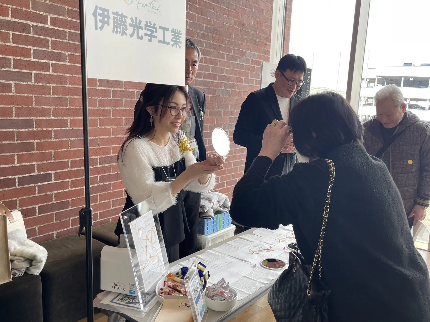 愛知県主催「東三河フェムテック産業推進事業」というプロジェクトの一環として、地元の30~60代の女性たちにチームに加わっていただき、女性の理想のメガネレンズの企画・開発を一緒に進めています。