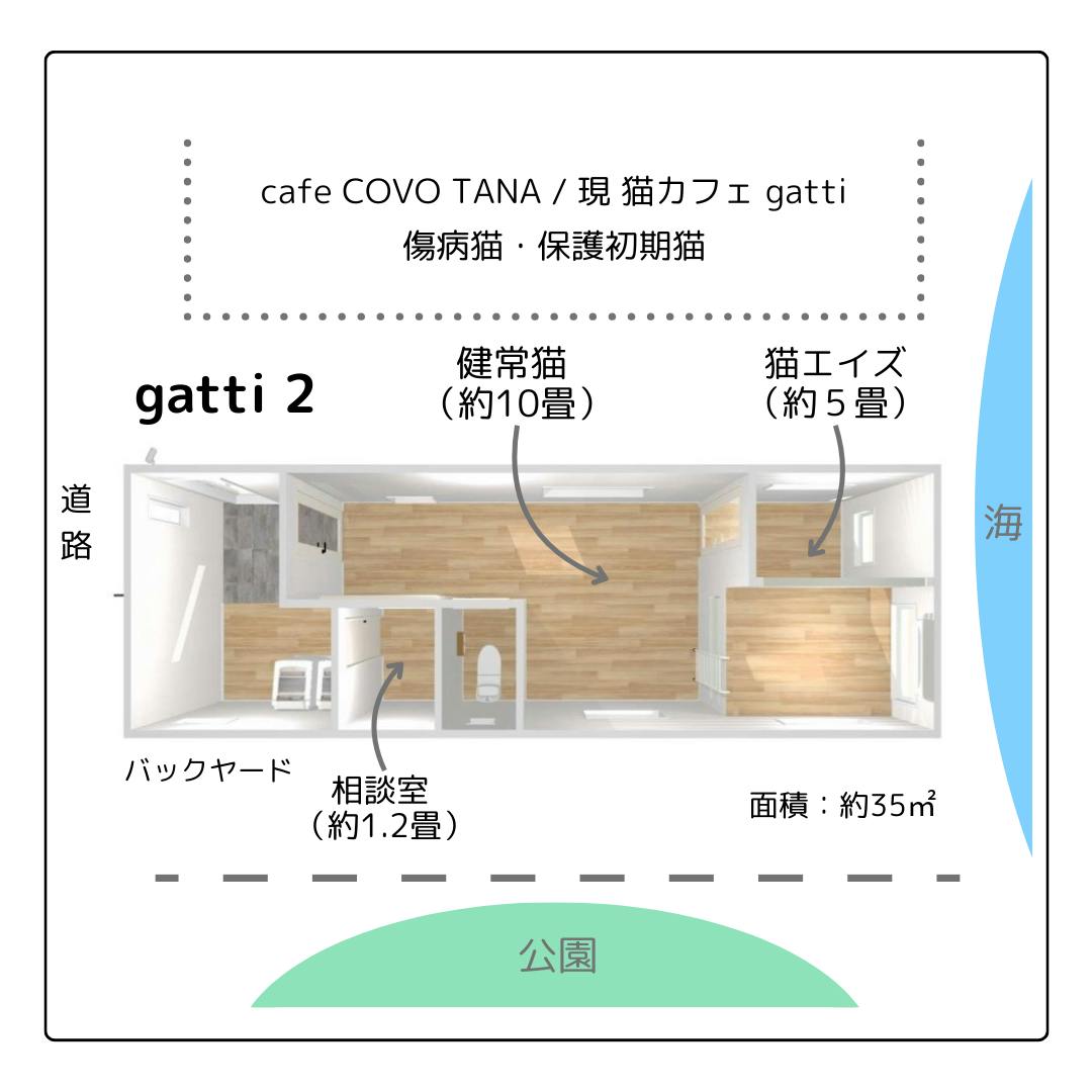 現在の保護施設、猫カフェ兼シェルター「gatti」内の様子