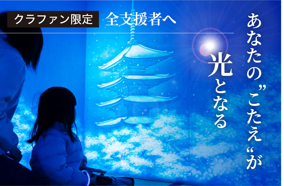 追加のご支援は、作品や演出をさらに充実させ、「参加型」と「没入感」をより深める体験 づくりに活用いたします。