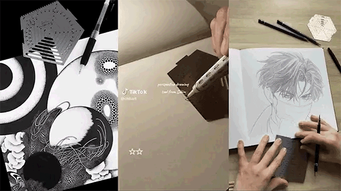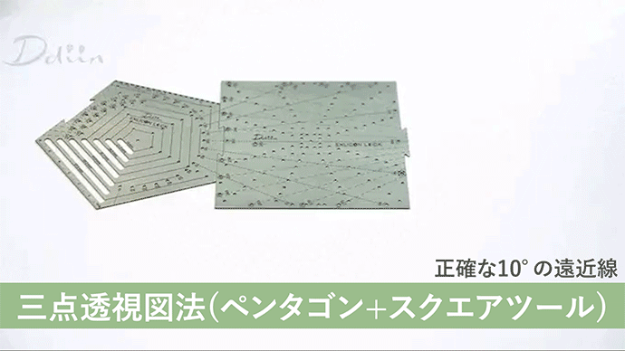 また、ペンタゴンツールとスクエアツールを組み合わせると5°+10°刻みの二点透視図法を描くこともできます!