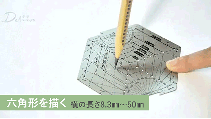 ヘキサゴンツールの直径は100mm、辺の長さは50mm、六角形の外接円は43.3mm、外接円の半径は 50mmです。