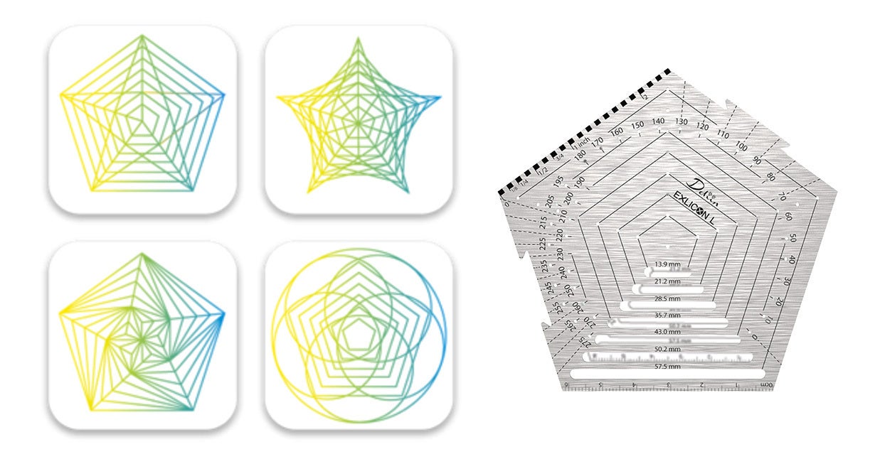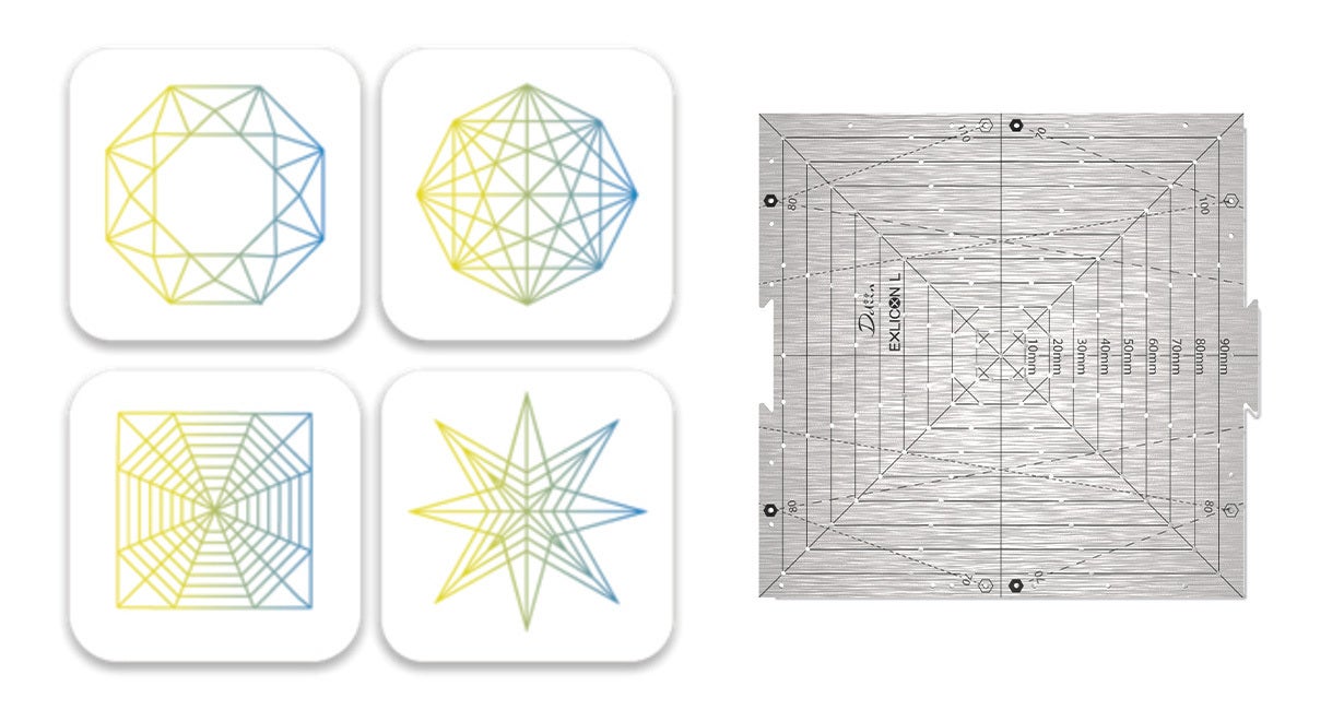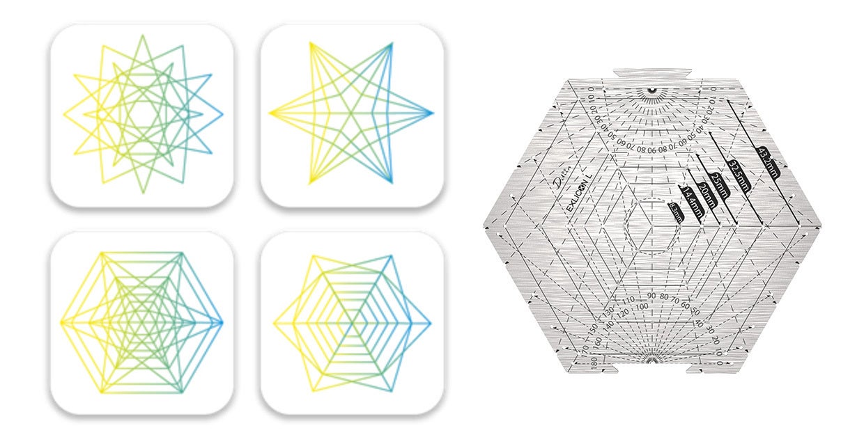 ヘキサゴンツール一つで多様な幾何学模様を描くことも可能!