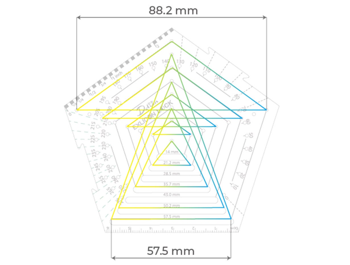 ペンタゴンツールには、メートル法とヤード・ポンド法の2種類の定規が搭載されています。