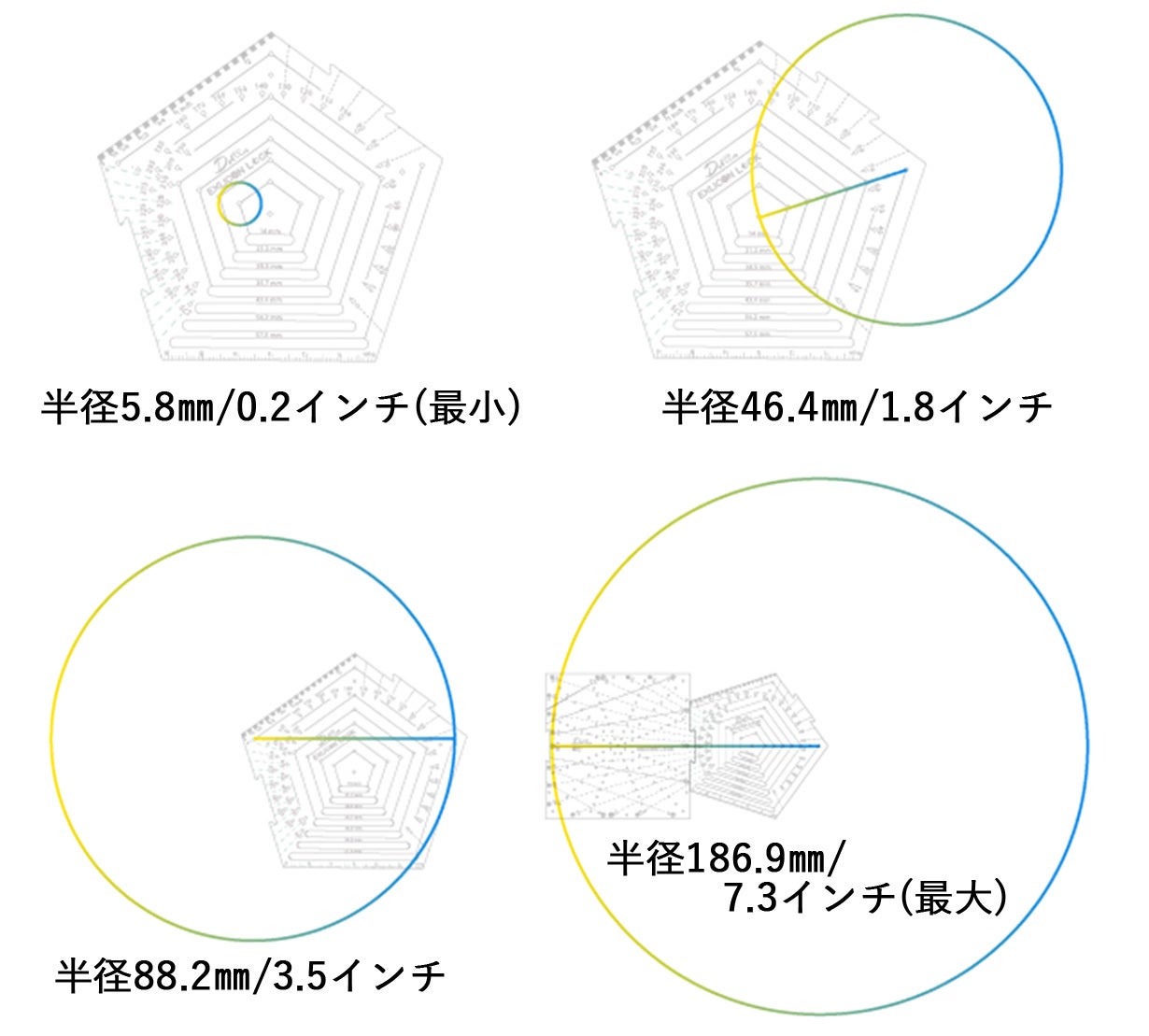 ・円:半径4.1mm(最小)~127mm(最大)