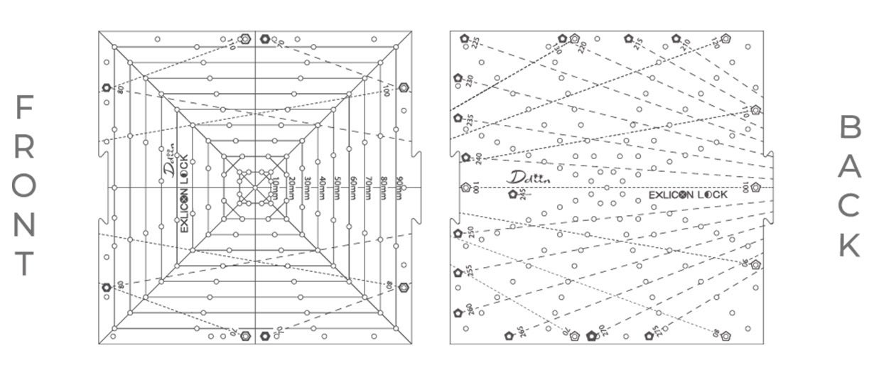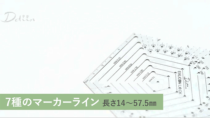 このツールには7つのライン穴があり、それぞれ幅3mm、長さは14mmから57.5mmまでの範囲です。 マーカーペンを使いやすいように設計されています。