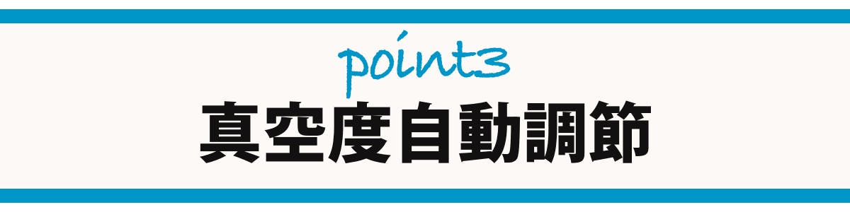 容器内の圧力レベルが20kPa以下に低下すると自動で調節。そのため、常に強力真空の状態を維持しコーヒー豆や中の食材が常に新鮮に保たれます。