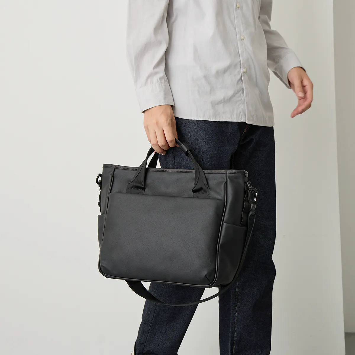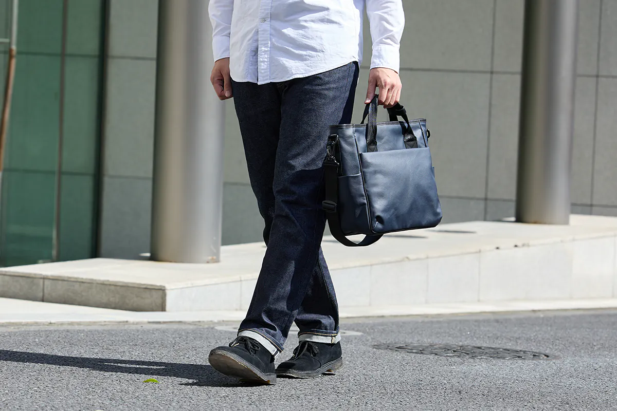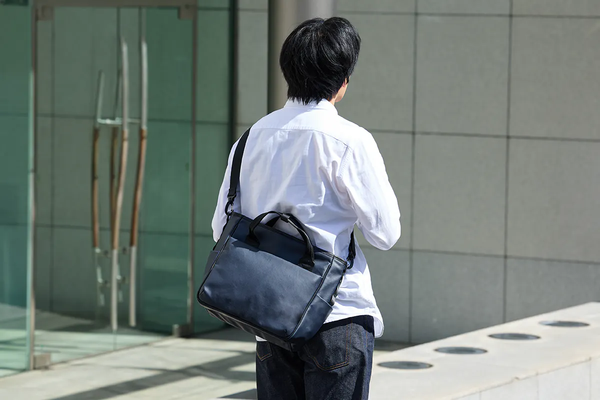 肩掛けや斜め掛け、手持ちと3通りの持ち方が出来るので、ビジネスシーンやオフの日など状況だけではなく、服装や気分にも合わせて持ち方を変えてご使用頂けます。