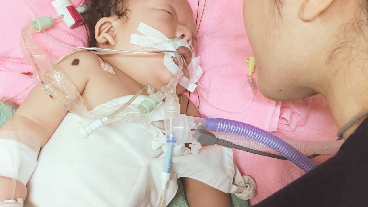 生まれてすぐは呼吸が安定せず、人工呼吸器を使って命をつなぎました。