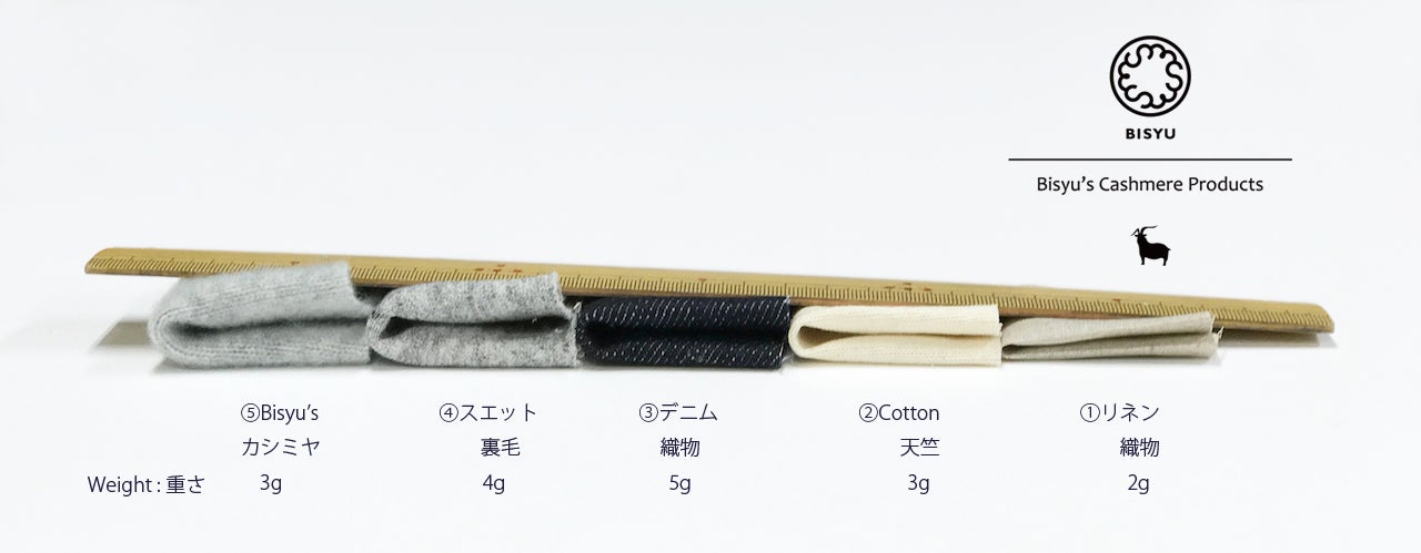 Bisyu's カシミヤ素材と他素材との比較検証を行いました。