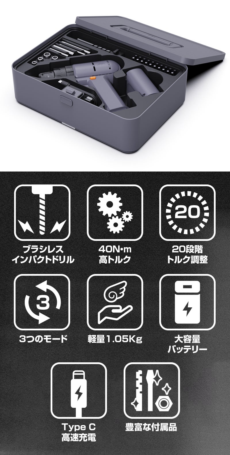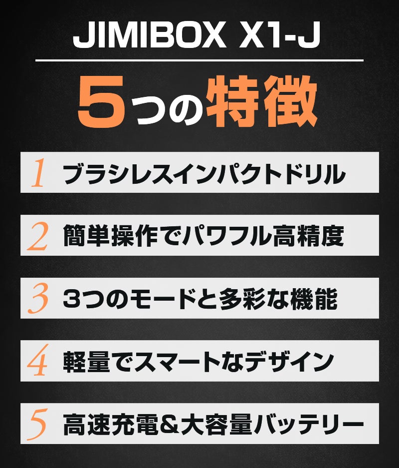 もっとパワフルでしっかりと、そして簡単に穴あけ、ねじ締めができる電動ドリルはないかと思っていたところ、JIMIBOX X1-Jに出会いました!