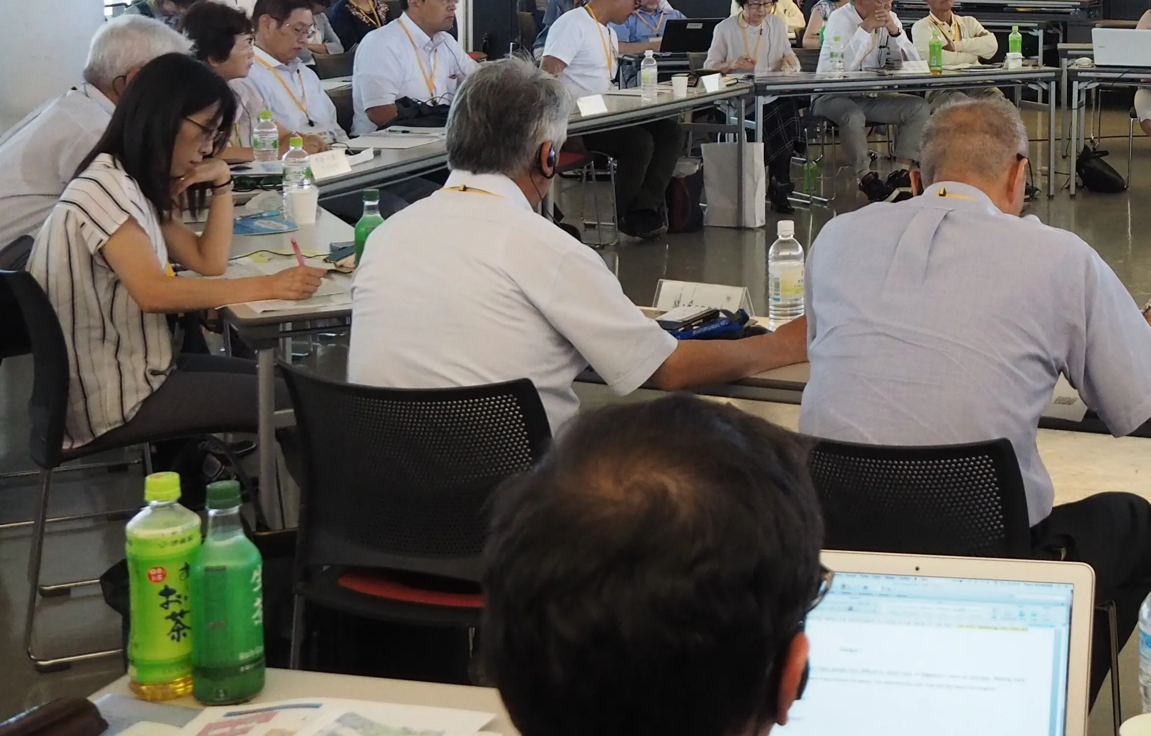 当日の会場では参加者(またはスタッフ)として海外の方がいらっしゃる場合も多々あり、日本語と英語の同時通訳が必要です。対話の場はほぼ丸一日の長丁場となるため、交代で通訳してもらうとなると最低でも2人必要となります。また、方言など地方特有の言い回しや言葉遣いをできる限り丁寧に正確に訳してもらうとなると、経験豊富な通訳をお願いせざるを得ません。対話集会におけるもっとも費用のかかる部分となりますが、この予算を確保しておくことで質の高いダイアログが実現できます。