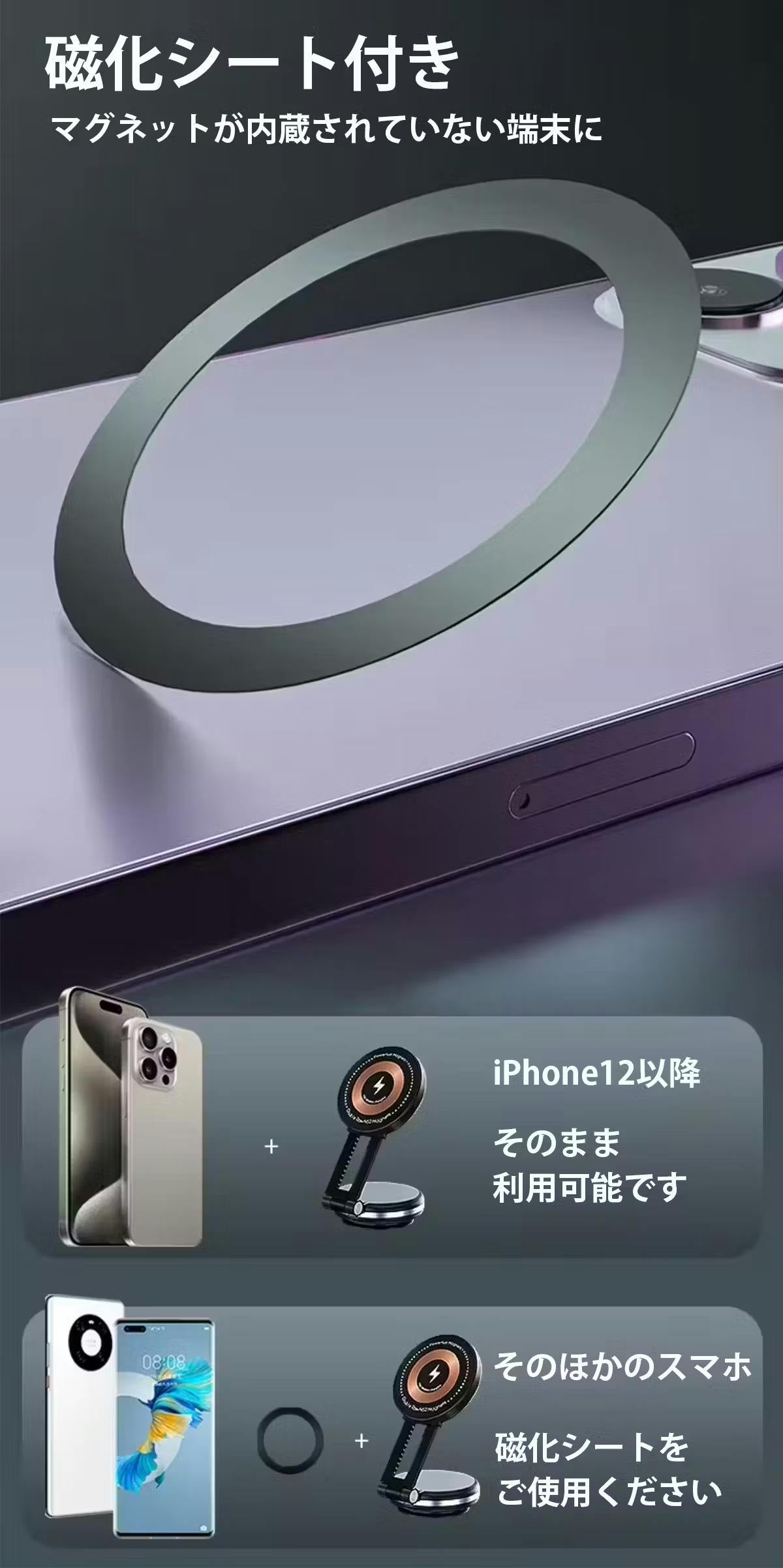 スマホを固定するホルダー側には磁力が強く、磁力低下も少ないN52グレードの磁石を採用。