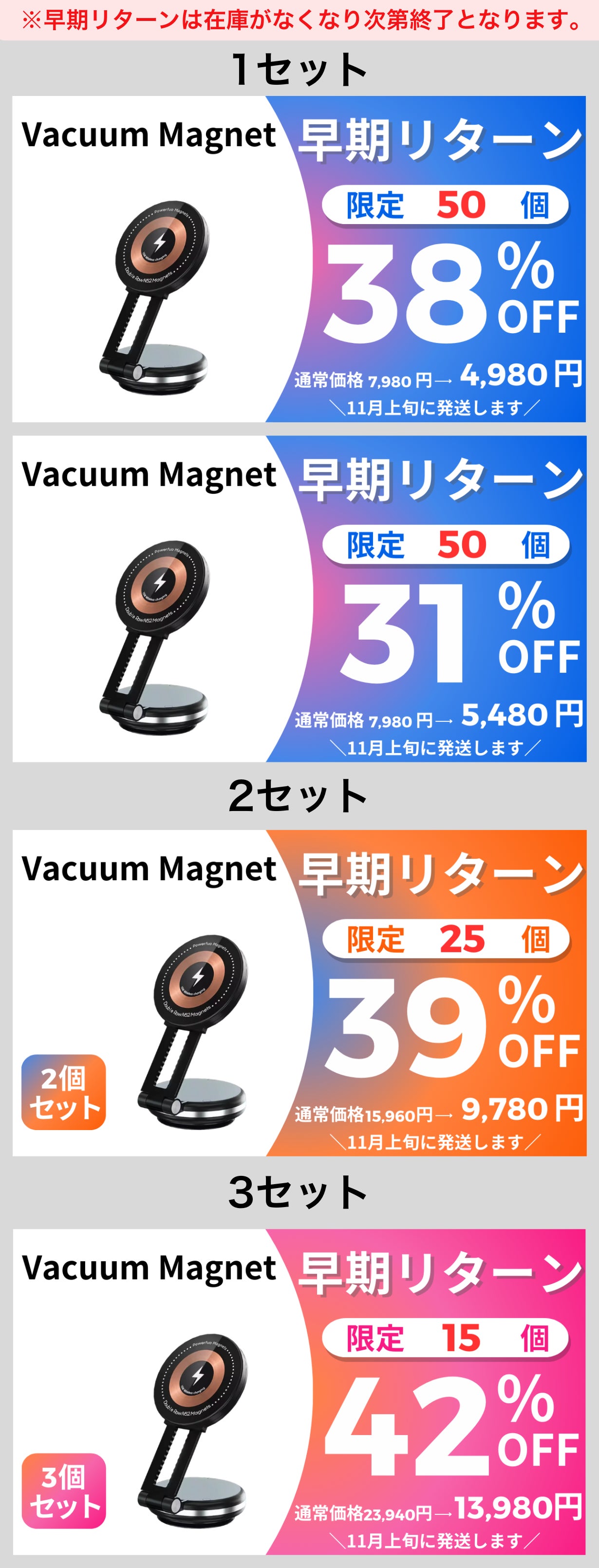 このVacuum Magnetの感動を、1人でも多くの方と共有したい。少しでも興味を持っていただけた方は、このオトクに試せる機会にチェックしていただければ幸いです。