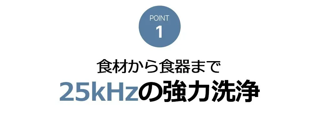 振動子から出力される超音波が水中で微細な気泡を作り出します。微細気泡が弾けながら発生する衝撃波で洗い物に付着している異物をキレイに洗浄します。
