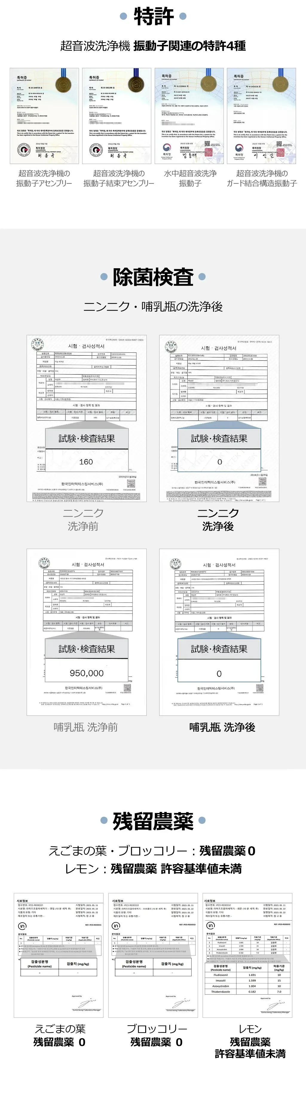 30年に渡る専門分野の研究により、超音波洗浄機に関する特許4種を取得(韓国)しています。