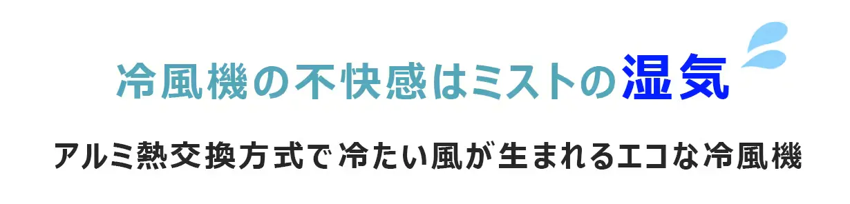 冷風機と言えばミストや水フィルターを使った気化熱を利用した冷風機が一般的です。ドライクーラーは風が水分に触れずに出力され、実際に温度が下がった冷風が湿気を含まずに出力されます。