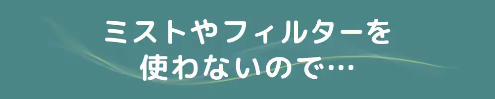水フィルターを使わないのでカビや異臭を大幅に低減します。