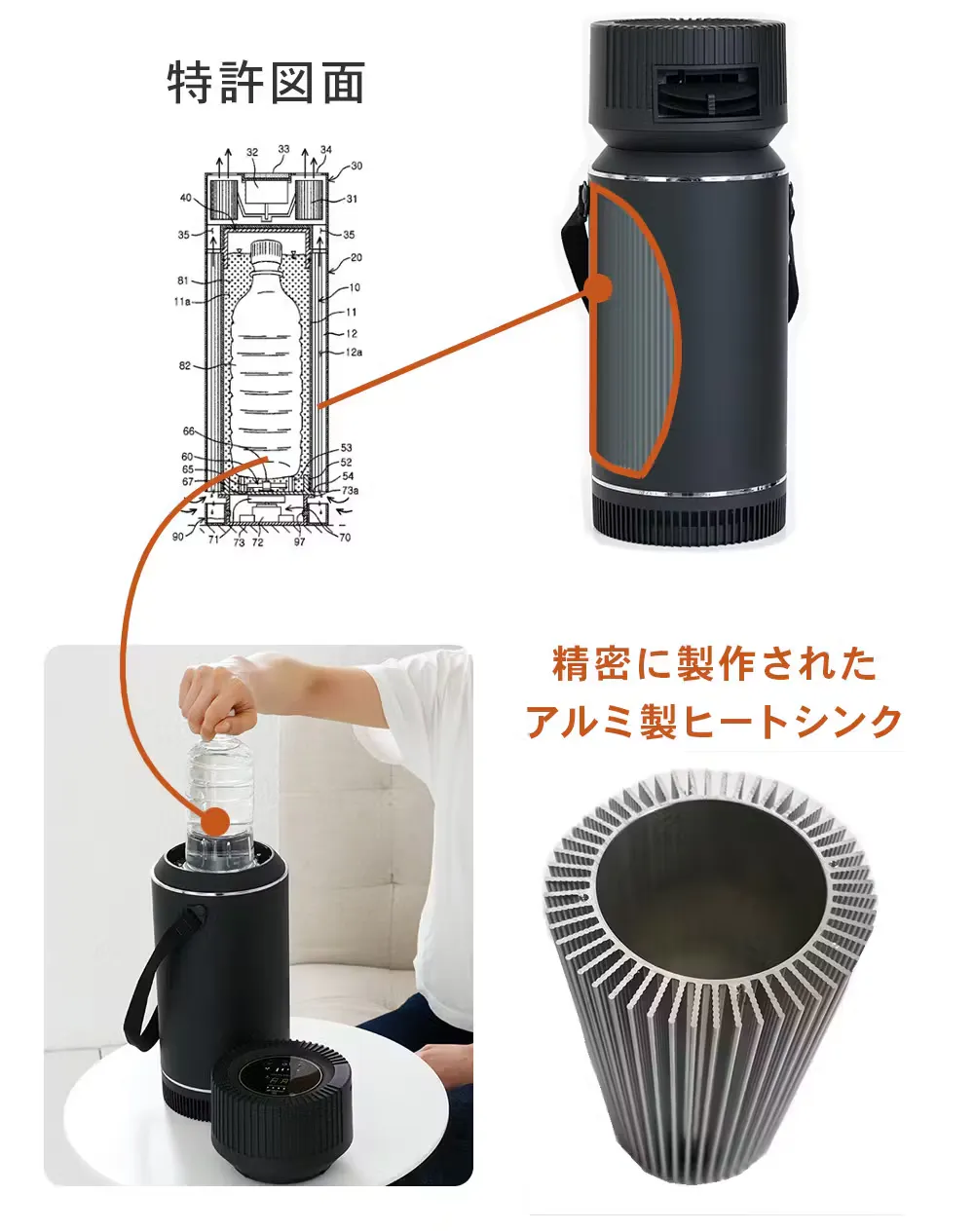 ドライクーラーは特許技術であるヒートシンク冷却を忠実に再現した製品です。