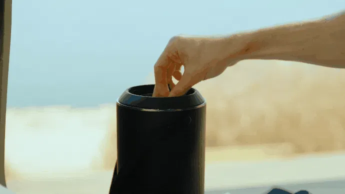 凍ったペットボトルを入れて水で浸すと-7度に冷やされた冷風がでる