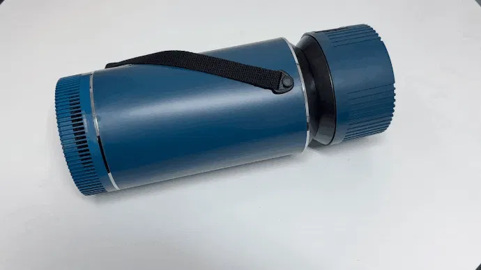 凍ったペットボトルをアルミ製の筒内部に入れて冷やされたヒートシンクの外側を吸い込んだ暖気を冷ましながら出力する熱交換