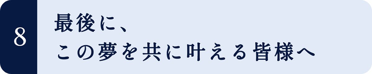 私たちの夢に共感し、この物語を一緒に紡いでくださる「仲間」を探す旅です。
