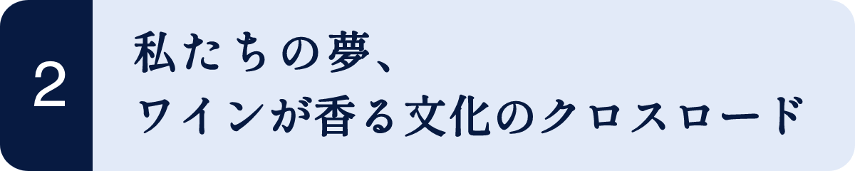 ワイナリーが、人と文化が交差するクロスロードになる。それが私たちの描く、ささやかで、けれど壮大な夢なのです。