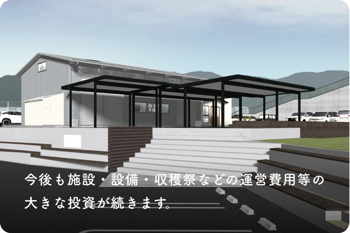 そしてこれからも、自動瓶詰機(約900万円)導入や、ワイナリー前の整備(大屋根設置やパーク整備で約1,000万円)、収穫祭などの運営費用等の大きな投資が続きます。