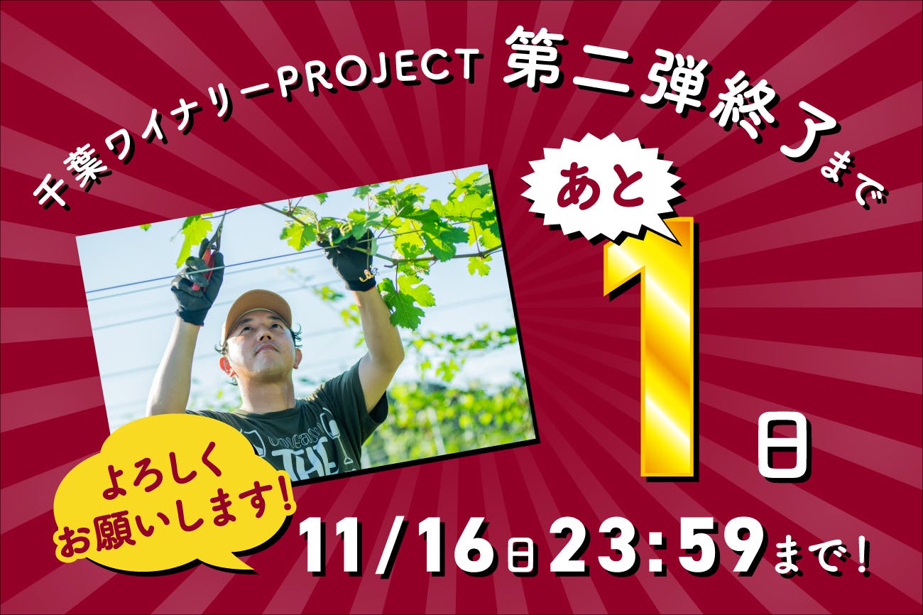 2025/11/16 18:18残りあと5時間となりました!既に前回と同じくらいご支援を頂いた事は、紛れもなく私たちの力になります。長年、千葉市に貢献したいと思っていた夢が一つ一つ形になり、その夢をこれだけの方々に応援して頂いています。私事ですが、この夢を1番応援してくれていた義理の父が8月に他界しました。ワインが好きで、国内外のワインを取り寄せ楽しんでいた義父、千葉市にワイナリーを作るために転職すると話した時には不安そうではありましたが背中を押してくれました。生憎ながら免許の交付も、出来上がったワインも見る事なく旅立ってしまいましたが、初めて私が手がけたワインを向こうでも飲んでくれる事を祈って。歩みを止める事なく、義父だけでなく多くの方に喜ばれるワイナリーにしていきます。残り時間僅かではありますが、ここまでこれたのも皆様のご支援のおかげです。これからも、どうぞ千葉ワイナリーをよろしくお願いします。11/22 TOMIO WINE FESTIVAL開催!千葉ワイナリー初醸造のワインをお楽しみいただける歴史に残る貴重なイベントです!開催情報はInstagramで発信いたします。ぜひフォローしてください!https://www.instagram.com/chibawinery/--------------------私たちの「千葉ワイナリーを未来を照らす文化の発信拠点へ」という挑戦は、皆様一人ひとりのご支援と応援によって初めて実現します。本プロジェクトにご共感いただけましたら、ぜひ以下の方法で私たちを応援お願いいたします!■□ご支援■□共感いただけた方は、ぜひご希望のリターンから、ご支援をお願いいたします。■□お気に入り登録■□今は支援が難しくても、「お気に入り登録」をしてプロジェクトの進捗を見守ってください。大きな励みになります。■□シェア■□このプロジェクトを一人でも多くの方に知っていただくため、ぜひSNSやメールでご友人・ご家族にシェアをお願いします。皆様の「シェア」が、私たちの夢を叶える最大の力になります。皆様の温かいご支援、心よりお待ちしております!\第2弾 クラウドファンディングに挑戦/プロジェクト支援期間最終日! ~ 2025年11月16日(日)23:59https://camp-fire.jp/projects/871361/view もっと見る